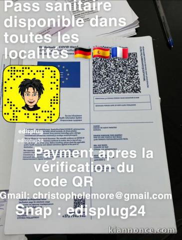 Obtenez un pass sanitaire dans toute les localites avec livraisons a nos frais et le paiement se faire juste apres la vérification du codr QR ou encore nous pourrioms directement vous l'envoyer pars PDF et la vous pourrez directement l'utiliser sur votre compte umili
